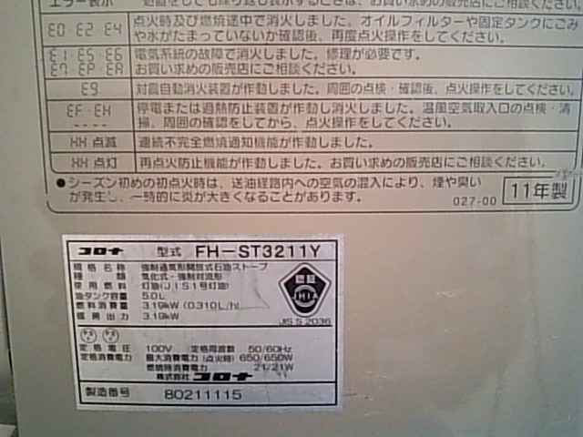 コロナ製ファンヒーター FH-ST3211Y